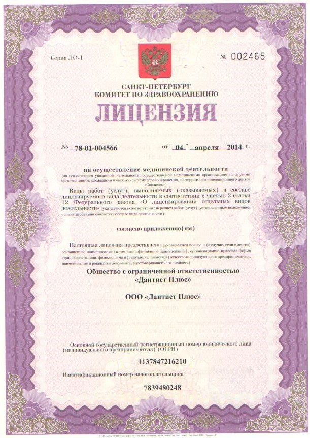 Стоматологическая клиника Дантист Плюс открылась в 2014 году, имеет медицинскую лицензию на весь спектр стоматологических услуг.